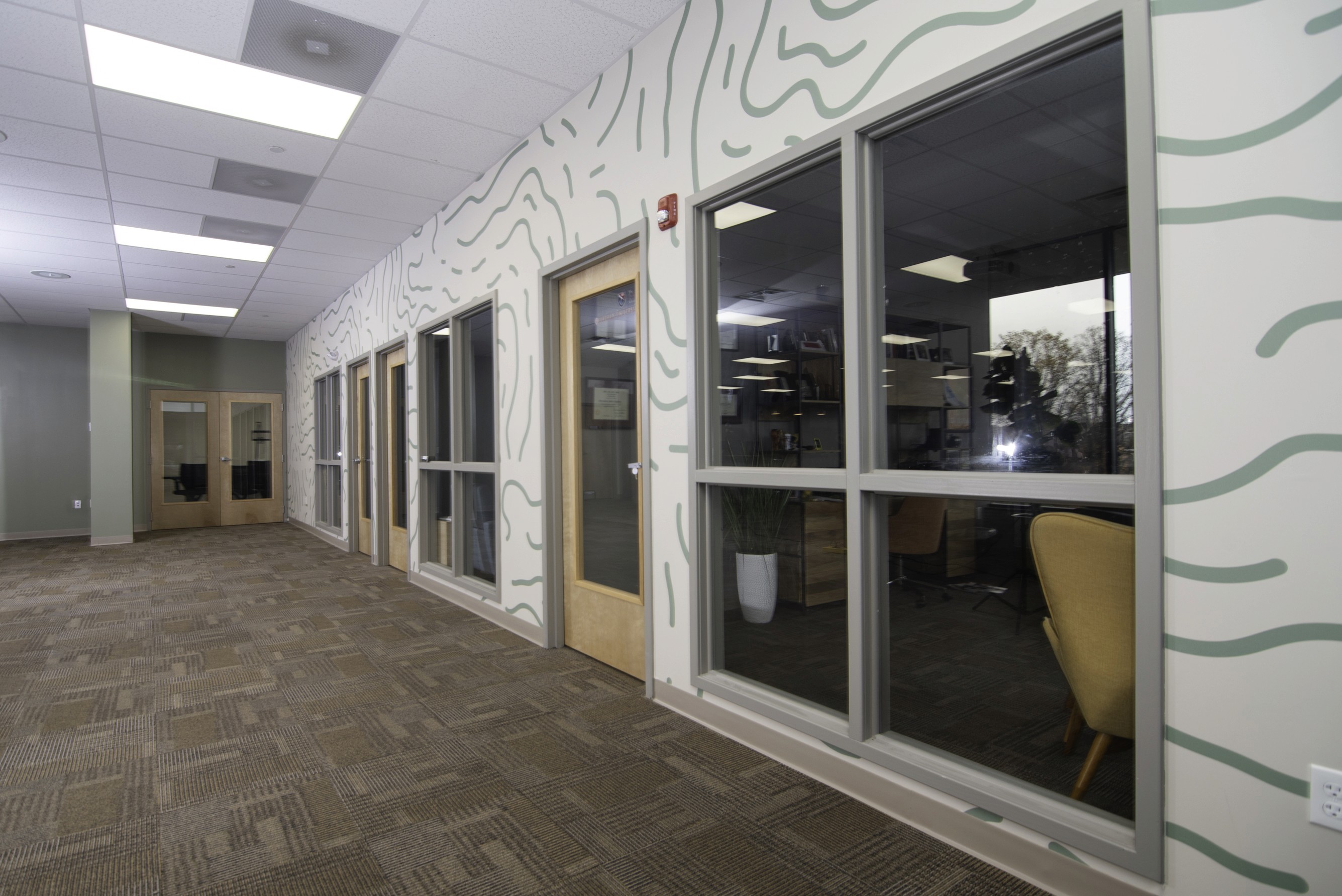 Our first engagement focused on transforming The Next Street’s new headquarters into a bold, branded environment. With minimal direction beyond “make it fun,” we translated architectural schematics into more than 1,800 square feet of immersive spatial graphics.