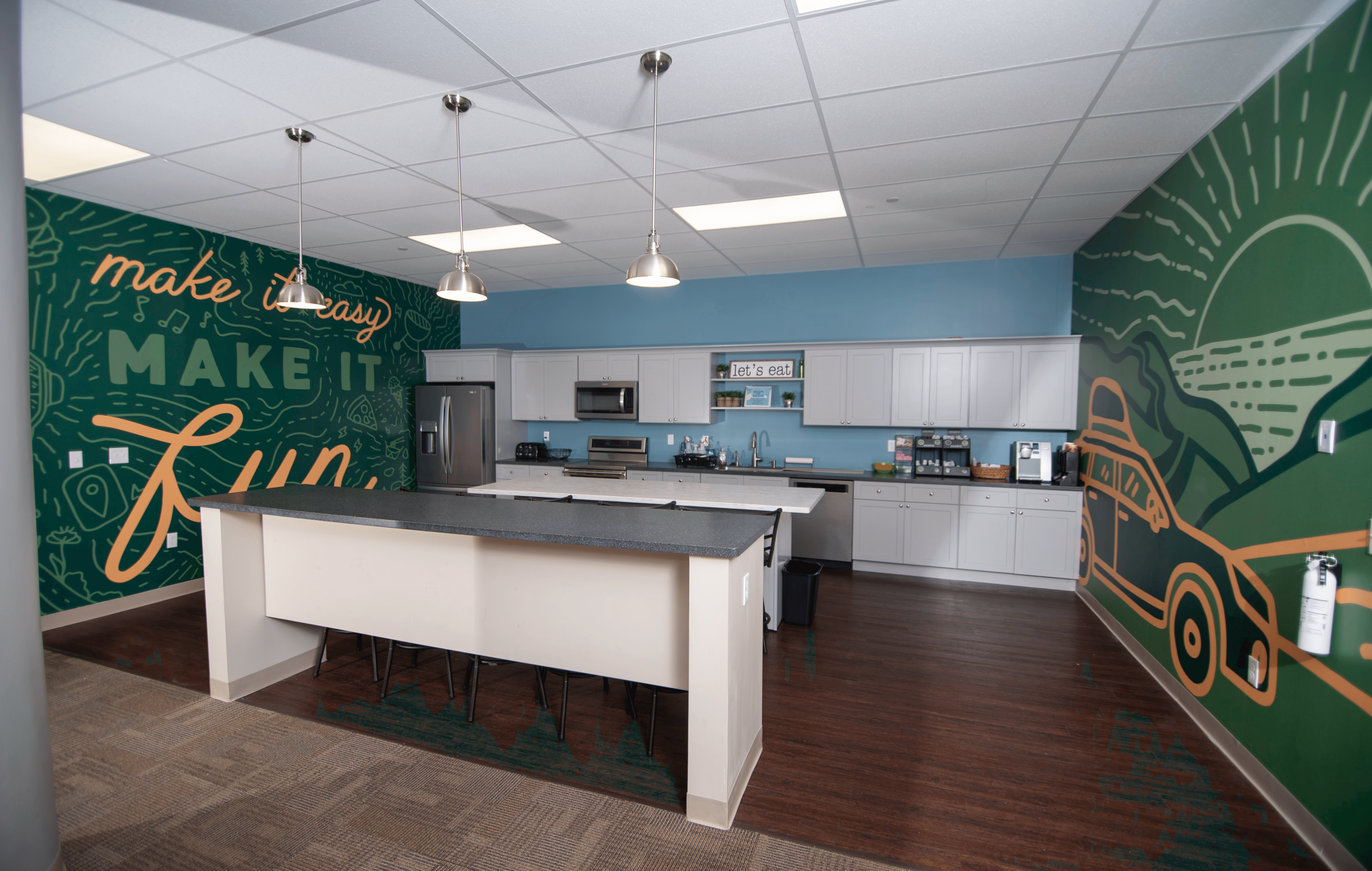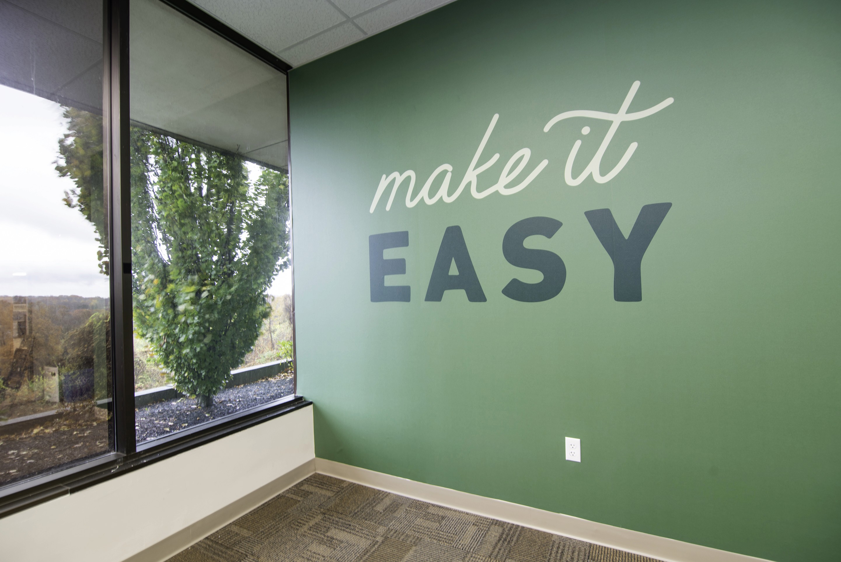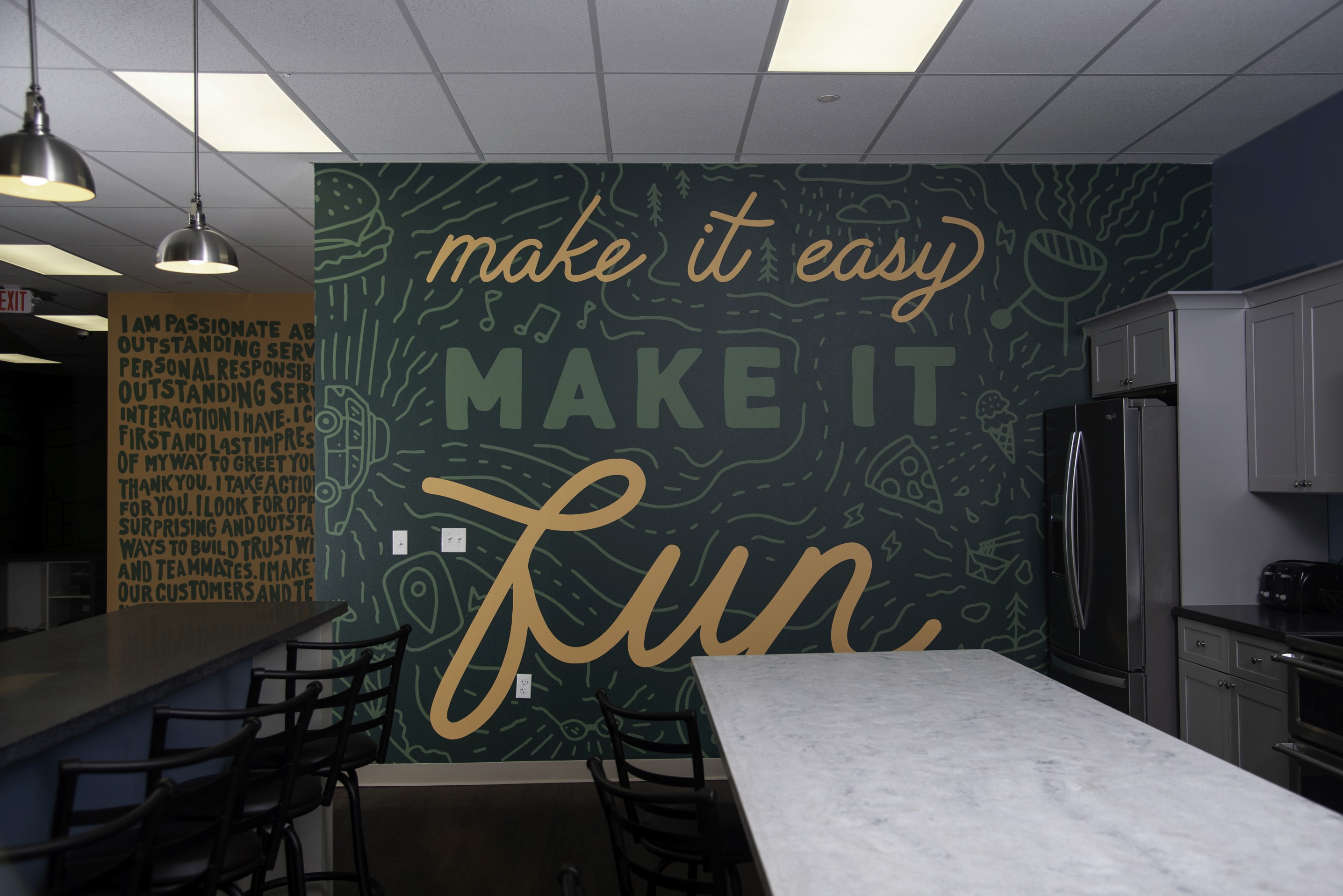 Custom illustrations and messaging brought the company’s core mantras to life. “Make it Easy” and “Make it Fun” became visual anchors that reinforced confidence, independence, and approachability for both employees and visitors.